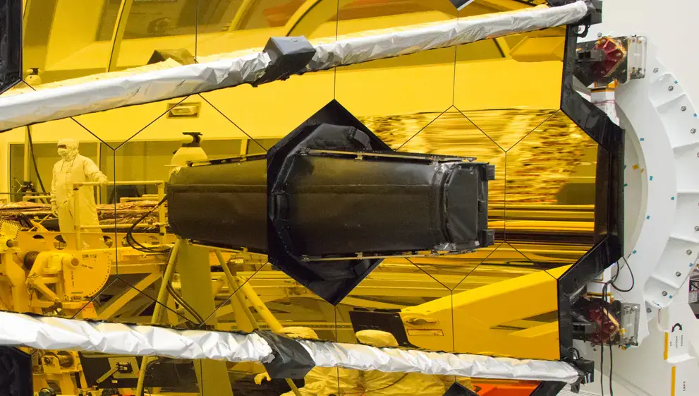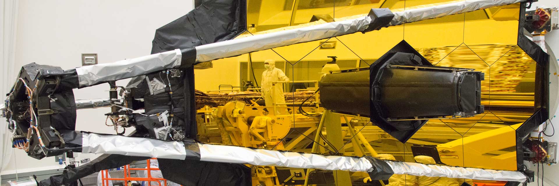 The James Webb Space Telescope (JWST or "Webb") is planned as the successor to the famous Hubble Space Telescope. The huge mirror will make the telescope so powerful, that scientists hope to be able to observe galaxies as far as 13 billion light years away from Earth – effective looking back in time to when these galaxies were young due to the duration if light travel at those distances.