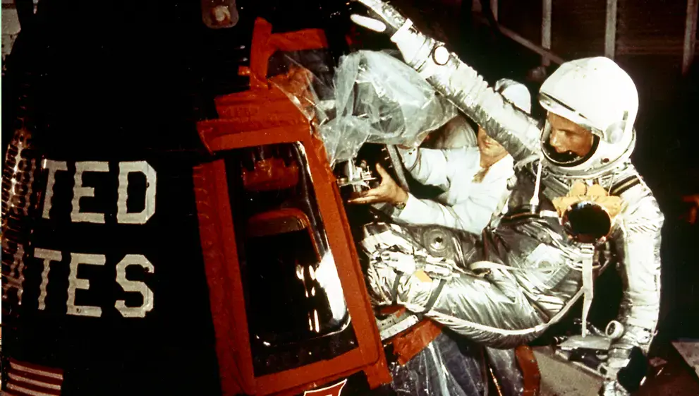Astronaut John Glenn enters the Mercury spacecraft, Friendship 7, prior to the launch of MA-6 on February 20, 1962 and became the first American who orbited the Earth.