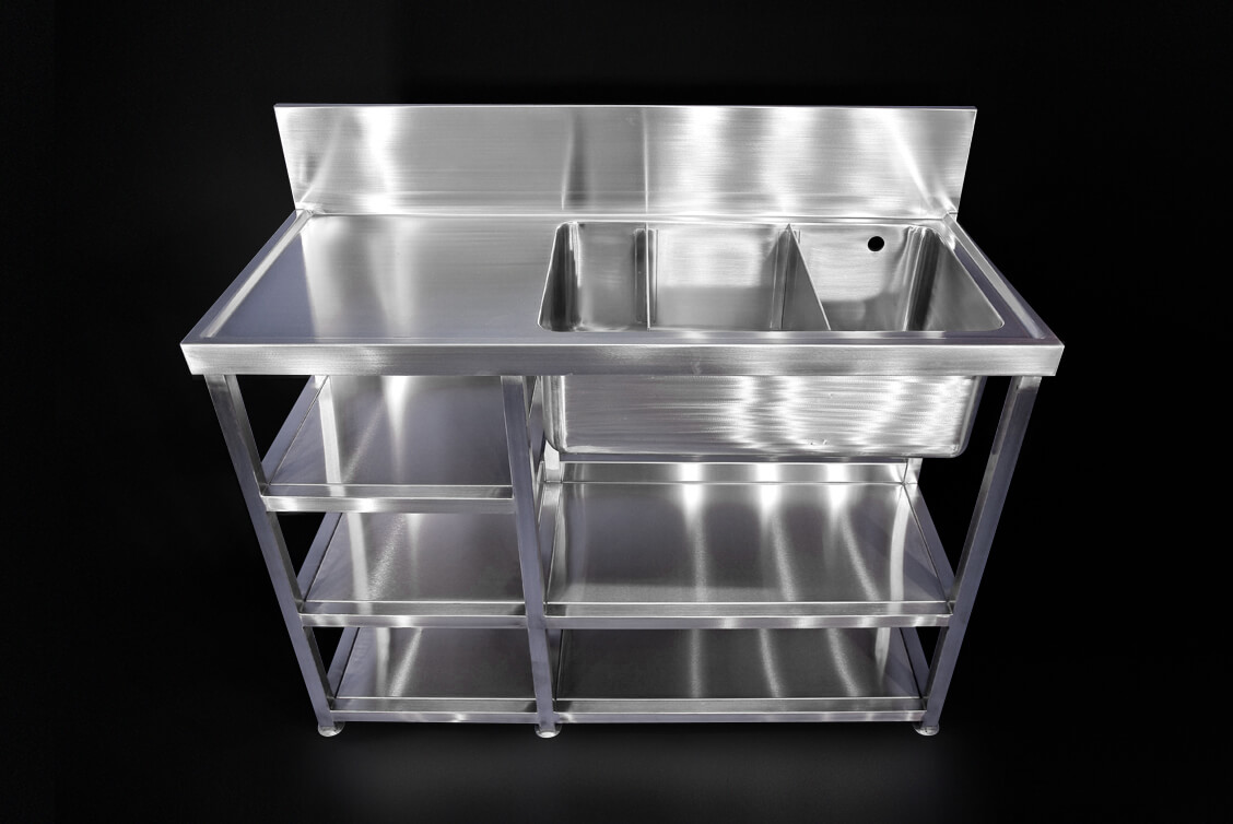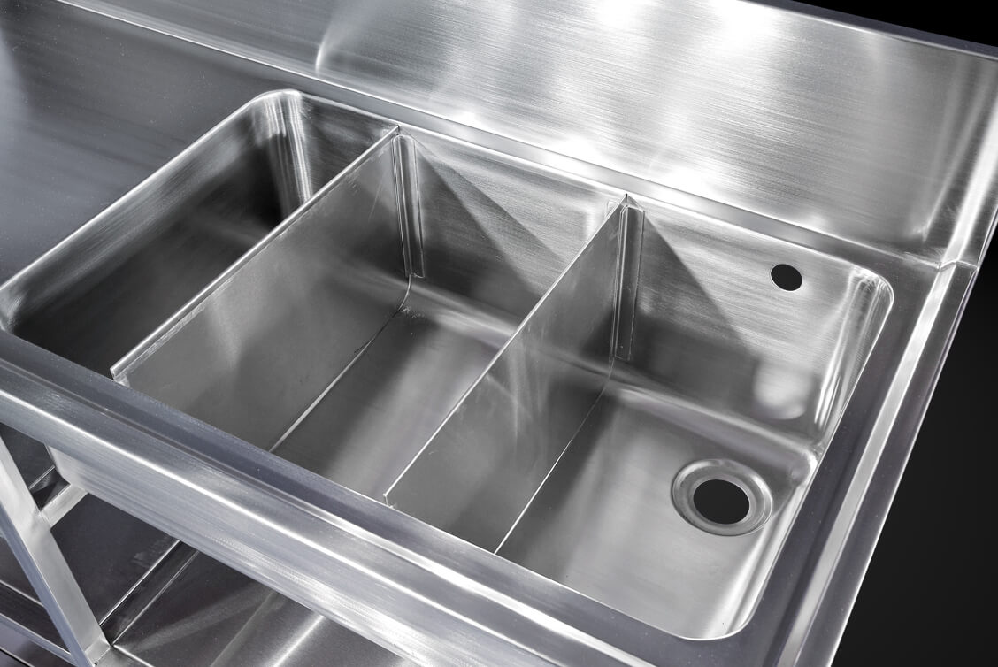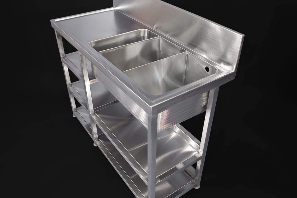 Our bespoke service means you can order the exact combination of bowls, drainers and storage that you need for your service counter. Whether you require a single basin to set into an existing worktop or want an entire sink and storage unit, with a steel support frame and integral counter, our engineers can fabricate it. The bowl can feature removable partitions, for separating ice/lemon slices/bottles/etc., and we can incorporate a small, separate bowl for hand washing. Whatever you need, we can produce it.