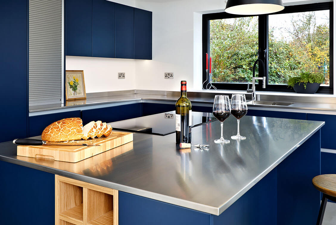Every join in our kitchens is fully welded, achieving a seamless finish that avoids those annoying cracks in which crumbs so often accumulate. What’s more, the food-grade metal is of such high quality that it meets all current Food Hygiene and Health & Safety regulations and is impervious to extremes of heat. Even a granite worktop will eventually mark from dishes continually placed straight on to it from the oven – a stainless steel work surface will remain unblemished.