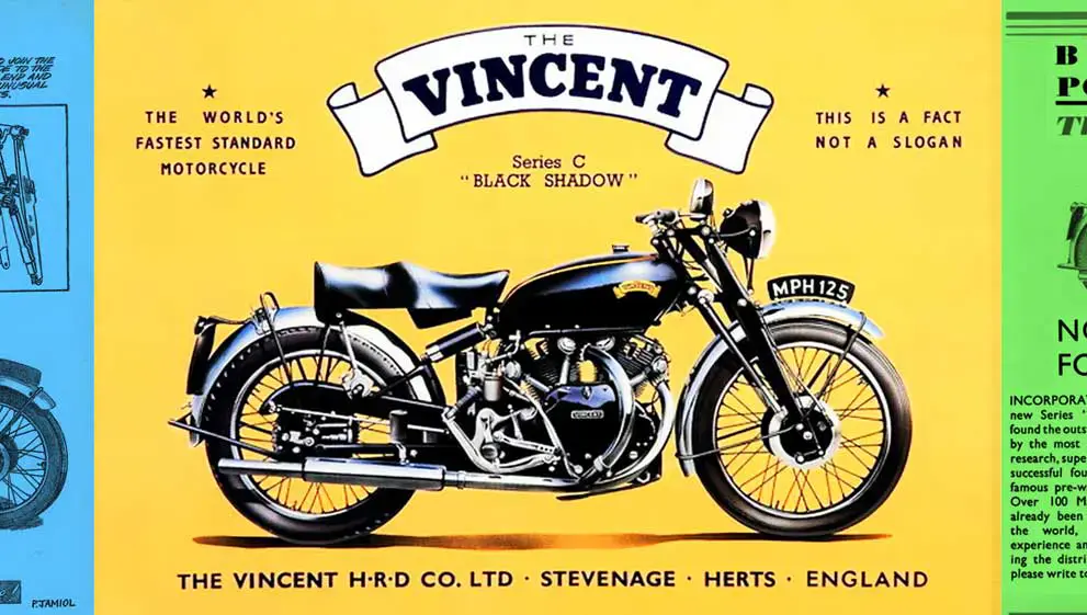 When the Vincent was first exhibited at the 1948 Motorcycle Show at Earls Court, London, a journalist there reported that the Vincent Black Shadow was “a connoisseur’s machine: one with speed and acceleration far greater than any other standard motor cycle; and with unique and ingenious features which make it one of the outstanding designs of all time. So far as the standards of engine performance, handling and braking are concerned – the chief features which can make or mar an otherwise excellent mount – the mighty Black Shadow must be awarded 99 out of 100 marks: 99 because nothing, it is said, is perfect.”
