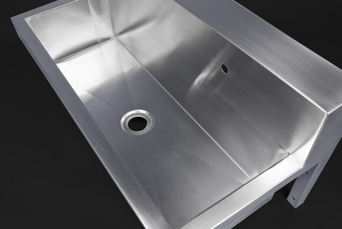 Each of our wash troughs is fabricated entirely to order by skilled engineers in our Nottingham factory. You can specify the exact depth and width of item you require, to fit the space you have available. We can also make it to virtually any length, up to 3500mm. Choose between the space-saving, wall-mounted model (which features adjustable front legs); the freestanding design, which can be fabricated with a built-under shelf, and the inset trough – for inclusion within a worktop. For the sleekest finish with an inset unit, opt for one of our stainless-steel worktops. This will give a fully-welded, seamless finish – not possible with any other work-surface material.