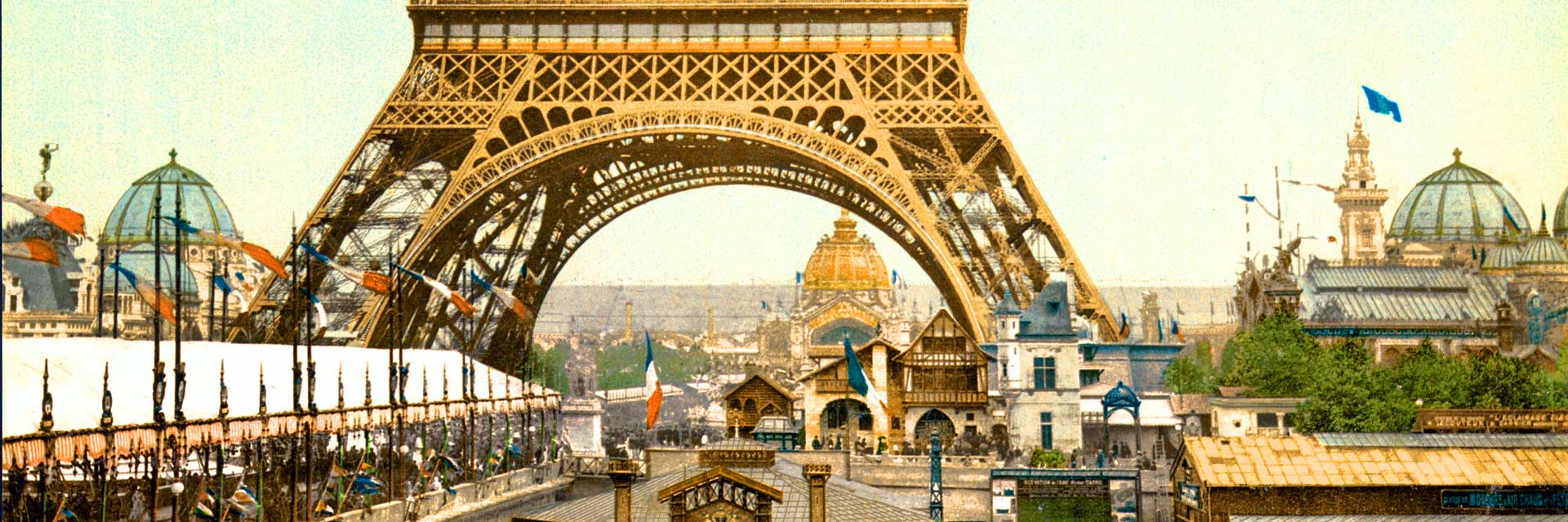 Eiffel Tower and general view of the grounds, Exposition Universal, 1889, Paris, France.